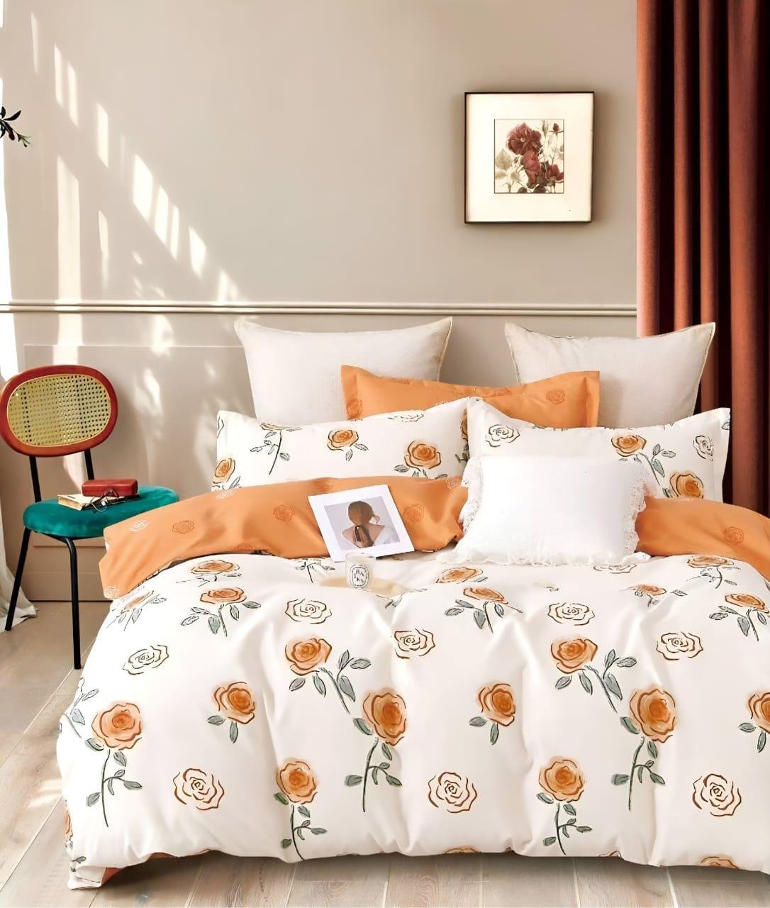 Be the first to review “Cotton look Queen Double Bedsheet Set with Pillow Covers–Premium Quality, Micro Prints-350 TC, 220 GSM_90x100 inches_250 x 230 cm”